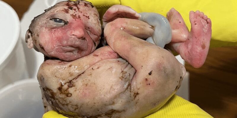 The heartbreaking pictures brought to light the truly evil and entirely barbaric nature of abortion. Among the poor children discovered was a little girl between 28 and 30 weeks’ gestation. She died with one eye open, staring off into the distance. Her head is partially crushed and her neck ripped to shreds. These injuries indicate she very possibly suffered an especially cruel, illegal partial-birth-abortion.