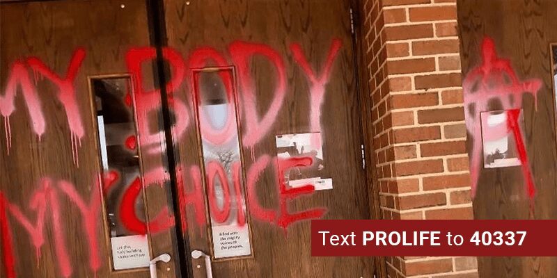 Thanks be to God the office was empty at the time and no one was hurt. Yet, the attackers left a threat spray-painted to the office wall. The message warned, “if abortions aren’t safe, then you aren’t either.”