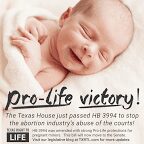 Texas Right to Life applauds this Pro-Life bill and the legislators who were eager to work to ensure that HB 3994 would pass with the strongest language possible.